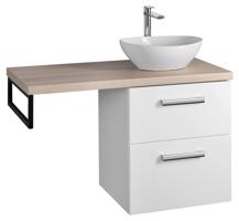 Tiché a plynulé zavírání Nábytek je vybaven pojezdy zásuvek s pomalým dojezdem a systémem automatického dovření zásuvek. Již žádné hlučné dovírání. Koupelnový nábytek VEGA s deskou VEGA (HPL) v dekoru dub platin lze kombinovat s umyvadly na postavení. Umyvadlové skříňky jsou dodávány ve smontovaném stavu, připraveny k okamžité instalaci. Instalujte nábytek na rovnou stěnu. Nevystavujte nábytek trvalé vlhkosti a styku s vodou. Koupelnu vždy řádně odvětrejte. Při zkroucení korpusu skříňky může dojít k poruše funkce dovíracích mechanismů. Proti případnému zatékání vody do skříňky použijte silikonový tmel. Desky pod umyvadlo jsou dodávány bez vyvrtaných otvorů pro baterii a odpad. EAN: 8590913921421