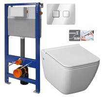 PODOMÍTKOVÝ SYSTÉM AQUA 52 PNEU S QF (S97-062) šířka: 510 mm nastavitelná výška: 1140 - 1340 mm nastavitelná hloubka: 110 - 160 mm Záchodový rám, pro suchou instalaci. Odolný, velmi mělký rám - pouze 11 cm. Zaručuje dlouhodobé a bezproblémové používání.Vlastnosti:- rám s pneumatickou splachovací technologií- rám vyrobený z profilů 40 x 40 mm- brzda v patě rámu- vypouštěcí koleno s možností nastavení na stranu a dole se 3 hloubkami nastavení- pozinkované, otočné patky- rám se 4 montážními polohami- QUICK FIX nástěnný montážní systém s mikroúpravou- velmi tichý plnící ventil s mosaznou připojovací vsuvkou, certifikováno NF- hygienický FRESH SYSTEM- instalace splachovací desky zepředu- voda může být připojena k nádrži ve 4 bodech zprava (z boku, shora) zleva (z boku, shora)- přizpůsobena systému s dvojitým splachováním: 2 / 4L, 3 / 5l (tovární nastavení) nebo 3l / 6l- barevné značení usnadňující instalaci TLAČÍTKO K SYSTÉMU ACCENTO SQUARE LESKLÝ CHROM (S97-057) plast pneumatické rozměr: 22,1x16,1x0,95 cm FRESH SYSTEM (speciální koš pro osvěžující tablety) ACCENTO SQUARE se čtvercovými tlačítky v lesklém chromovém provedení. Tlačítko s větším rozsahem spláchnutí jemně vyčnívá nad povrch tlačítka a jeho okraj je zakončen zkosením. Tlačítko má rovnoměrný lesklý povrch a je určeno pro skryté rámy AQUA řady 5/ 7/ 9 a SYSTEM 5/ 7. Pracuje se SYSTÉMEM FRESH, což je ideální řešení ve spojení s technologií bez okrajů CleanOn. Toto kompletní, moderní řešení zaručuje komplexní hygienu na toaletě. ZÁVĚSNÁ MÍSA CARINA NEW CLEAN ON (K31-046) Šířka: 35 cm Hloubka: 52,5 cm Barva: bílá WC závěsná mísa CARINA NEW CleanOn elegantního vzhledu s horizontálním odpadem, funkcí splachování 2,5/5, 3/5l. WC mísa nemá límec jako v tradičních mísách, kde se hromadí nečistoty a bakterie. SEDÁTKO CARINA DUROPLAST ANTIBACTERIAL (K98-0068) Záchodové duroplastové sedátko se standardním zavíráním bílé barvy s antibakteriálními vlastnostmi. 36,4 x 43,6cm EAN: 8596462026679