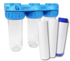 Set vodní 3- stupňové filtrace Donner TRIO je předfiltrační systém pro sediment, pesticidy, chlór a další nečistoty. Filtrační systém pro pitnou vodu. Pro filtrační vložky typu SX. Součásti balení jsou filtry: PP10 - 10mcr, 1mcr, aktivní uhlík blok.Tří stupňová filtrace Donner TRIO je určena pro domácí, dešťovou, zahradní i studniční vodu. Je ideální jako tzv. předfiltr pro domácí vodárny, studny, ponorná čerpadla, odstředivá čerpadla, jezírka a bazény.Sada tří stupňové filtrace Donner TRIO pro pitnou vodu, se instaluje přímo na potrubí. Do pouzder se vkládají filtrační vložky. Třístupňový průtokový filtr, upraví vaší vodu jednoduše a levně. Přístroj má certifikaci.Další výhodou tří stupňové filtrace Donner TRIO je nejen odstranění sedimentů a mechanických nečistot, ale zároveň chrání zařízení před poškozením způsobeným pískem.Třístupňová filtrace se montuje v kuchyni pod kuchyňský dřez, zapojuje se přímo na přívod studené vody s připojením 1/2 ". Filtrační vložky je potřeba měnit - doba trvanlivosti filtrační vložky je individuální - záleží na kvalitě a množství spotřebované vody (nejčastěji cca co 6 měsíců). K výměně postačí odšroubovat obal filtru.Klíčové vlastnosti Donner TRIO 3 - stupňové filtracekvalitní průhledné pouzdro filtrukryt filtru je vyroben z nárazuvzdorného plastuoboustranné připojení pomocí 1/2" mosazného závituobjem cca 2 litrypouzdra jsou kompatibilní s většinou filtračních vložek na trhuvyrobeno bez BPAsnadná a rychlá instalaceověřená kvalita za rozumnou cenuúčinné zachycení mechanických nečistot (písek, rez, bahno, štěrk)odstranění až 99% chlóru z vodylikvidace škodlivých organických látekzlepšení chuti i vůně vodynormalizuje pHTechnické parametrymaximální pracovní tlak: 10-12 barůmaximální teplota vody: 2 - 45° Cmaximální průtok vody: 3000 litrů/hvstup mosazný vnitřní závit 1/2"výstup: mosazný vnitřní závit 1/2"počet filtračních fází: 3Filtrační vložky a jejich doporučené řazení pro 3 stupňovou filtraci Donner TRIOfiltrační vložka PP10-10 (sedimentační kartuše 10 micronů) - slouží k zachycení sedimentů jako je např. písek, vlasy, bahno, rez, štěrk, hlína apod.filtrační vložka PP10-1 (sedimentační kartuše 1 micron) - odstraňuje nadměrný počet hodnot vápníku a hořčíkufiltrační vložka CTO10-C (uhlíková kartuše blok)- očišťuje vodu od zbytků chlóru, organických sloučenin a suspenzí. Dezinfikuje vodu. Neovlivňuje tvrdost vody. Uhlík je nejlepší přírodní pohlcovač velmi širokého spektra organických i neorganických nečistot. Z vody dokáže odstranit nepříjemnou chuť a zápach.Filtrační uhlíková vložka Donner TCO10-C je oproti vložkám s granulovaným uhlíkem kvalitnější. Je použit speciální lisovaný uhlík, jehož povrchová plocha je větší a tím pádem zaručuje až o 25% vyšší účinnost. EAN: 8596220013422