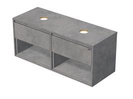 Emmy Design EMMY 120 cm beton/beton s dvěma zásuvkami a 2x otevřenou nikou, pro umyvadla na desku (F186/F186)