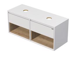 Emmy Design EMMY 120 cm bílá/halifax s dvěma zásuvkami a 2x otevřenou nikou, pro umyvadla na desku (A0536/80)