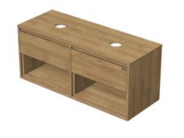 Emmy Design EMMY 120 cm dub/dub s dvěma zásuvkami a 2x otevřenou nikou, pro umyvadla na desku (H3730 /H3730)