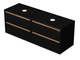 Emmy Design EMMY 160 cm černá/dub se čtyřma zásuvkami, pro umyvadla na desku (A3686/H3730 ST 10)