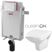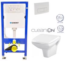 DUOFIX Basic pro závěsné WC, s nádržkou Delta (458.103.00.1) Účel použití- Pro zabudování do předstěnové instalace na částečnou nebo celou výšku místnosti před masivní stěnou nebo stěnou prováděnou suchým procesem- Pro montáž závěsného WC se vzdáleností upevnění 18 cm nebo 23 cm- Pro tloušťku podlahy 0 - 20 cm- Pro ovládání zepředu- Pro ovládání pomocí Geberit ovládacích tlačítek Delta- Pro připojení Geberit AquaClean- Nevhodný pro zabetonováníVlastnosti- Geberit Delta splachovací nádržka pod omítku 12 cm (UP100), ovládání zepředu- Splachovací nádržka pod omítku izolovaná proti orosování- Nastavitelné velké splachovací množství- Malé splachovací množství pevně nastavené- Nastavitelné okamžité spláchnutí možné- Přívod vody zezadu/shora uprostřed- Připojovací hadička k rohovému ventilu ručně přišroubovatelná- 1 množství splachování s Geberit ovládacím tlačítkem Delta15- 2 množství splachování s Geberit ovládacími tlačítky Delta20, Delta21, Delta50- Povrch rámu upravený práškovou barvou, barva Geberit modrá- Samonosný prvek- Rám s otvory ø 9 mm pro upevnění do dřevěných konstrukcí- Pozinkované podpěry, plynule nastavitelné 0 - 20 cm- Patní desky z plastu, hloubka vhodná pro montáž do profilu UW50- Instalační hloubka 12 cmTechnické informaceSplachovací množství - nastavení z výroby 6 a 3,5 lVelké splachovací množství - rozsah nastavení 4,5 / 6 / 7,5 l Ovládací tlačítko DELTA51, alpská bílá (115.105.11.1) - pro ovládání splachování splachovacích nádržek pod omítku Geberit- pro ovládání zepředu- pro Geberit splachovací nádržky pod omítku Delta 12 cm (UP100)- pro 2 množství splachování WC závěsná mísa CARINA NEW CleanOn (K31-046) Šířka: 35 cm Hloubka: 52,5 cm Barva: bílá WC závěsná mísa CARINA NEW CleanOn elegantního vzhledu s horizontálním odpadem, funkcí splachování 2,5/5, 3/5l. WC mísa nemá límec jako v tradičních mísách, kde se hromadí nečistoty a bakterie. Záchodové duroplastové sedátko CARINA (K98-0068) Záchodové duroplastové sedátko se standardním zavíráním bílé barvy s antibakteriálními vlastnostmi. 36,4 x 43,6cm EAN: 8596462004264