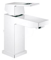 Páková umyvadlová baterie Eurocube, velikost S jednootvorová montáž kovová páka keramická kartuše 28 mm s GROHE SilkMove® omezovač teploty GROHE StarLight chromový povrch GROHE EcoJoy SpeedClean perlátor 5,7 l/min GROHE QuickFix Plus rychloupevňovací systém odtoková souprava DN 32 flexi připojovací hadičky EAN: 4005176901591
