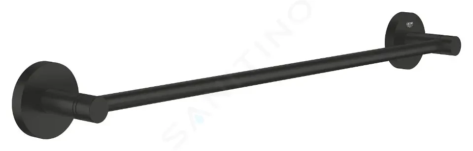 Držák na osušky materiál: kov provedení: matte black - matná černá GROHE Long-Life povrch funkční délka: 800 mm, celková délka: 854 mm skryté upevnění montáž: šroubování nebo lepení upevňovací materiál (šrouby a hmoždinky) je součástí balení Lepidlo je možné dokoupit - doporučujeme dokoupit GROHE QuickGlue A2.
