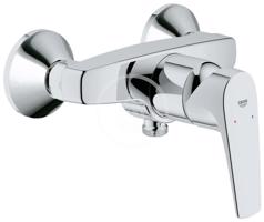 Páková sprchová baterie bez sprchového příslušenství montáž na stěnu kovová ovládací páka GROHE Longlife keramická kartuše 46 mm GROHE StarLight chromový povrch variabilně nastavitelný omezovač průtoku sprchová výpusť s integrovanou zpětnou klapkou skryté S-přípojky kovové nástěnné rozety zajištěno proti zpětnému toku EAN: 4005176388682