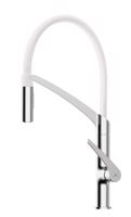 Páková kuchyňská baterie s výsuvnou sprškou ComfortZone 240 rozsah otáčení 110° / 150° laminární a sprchový proud aretovatelný sprchový proud, zpětné nastavení proudu stisknutím tlačítka magnetický držák sprchy MagFit hadice spršky s rychlospojkou Quick-Connect rozměr přívodů: DN15 průtokové množství 9,5 l/min keramická kartuše zpúsob montáže: přívodní hadice G ⅜ vestavěný zpětný ventil vhodné pro průtokový ohřívač EAN: 4011097718309