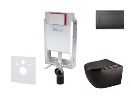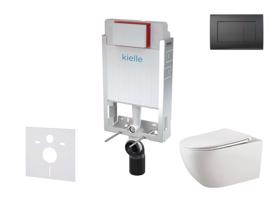 Kielle Genesis Set předstěnové instalace, klozetu Gaia, sedátka softclose a tlačítka Gemini III, matná černá 30505SZ12