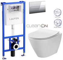 LAUFEN Rámový podomítkový modul CW1 SET s chromovým tlačítkem + WC CERSANIT CLEANON CITY H8946600000001CR CI1