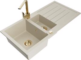 MEXEN/S Andres granitový dřez s odkapávačem včetně baterie Rita, béžová 6515-69-670300-69