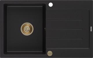 MEXEN/S Bruno granitový dřez 1-miska s odkapávačem 795 x 495 mm, černý, zlatý sifon 6513791010-77-G