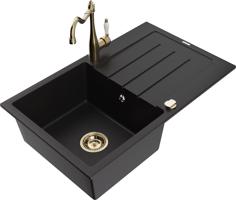 MEXEN/S Bruno granitový dřez 1-miska s odkapávačem včetně baterie Carla, černá 6513-77-670700-00