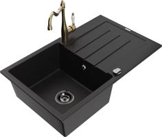MEXEN/S Bruno granitový dřez 1-miska s odkapávačem včetně baterie Carla, černá 6513-77-670700-50-B