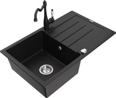 MEXEN/S Bruno granitový dřez 1-miska s odkapávačem včetně baterie Carla, černá 6513-77-670700-70