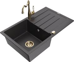MEXEN/S Bruno granitový dřez 1-miska s odkapávačem včetně baterie Carla, černá kropenatá 6513-76-670700-70