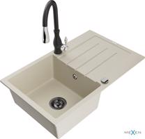 MEXEN/S Bruno granitový dřez 1 s odkapávačem včetně baterie Savita, béžová 6513-69-672601-69