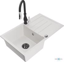 MEXEN/S Bruno granitový dřez 1 s odkapávačem včetně baterie Savita, bílá 6513-20-672601-70