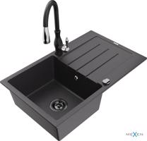 MEXEN/S Bruno granitový dřez 1 s odkapávačem včetně baterie Savita, černá kropenatá 6513-76-672601-70-B