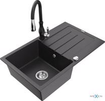 MEXEN/S Bruno granitový dřez 1 s odkapávačem včetně baterie Savita, černá kropenatá 6513-76-672601-70