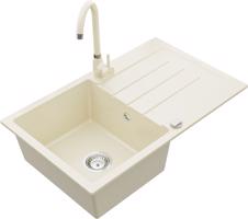 MEXEN/S Bruno granitový dřez 1 s odkapávačem včetně baterie Telma, béžováy 6513-69-670200-69