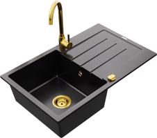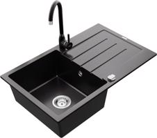 MEXEN/S Bruno granitový dřez 1 s odkapávačem včetně baterie Telma, černá 6513-77-670200-00