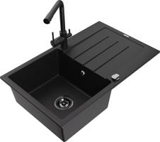 MEXEN/S Bruno granitový dřez s odkapávačem včetně baterie Duero, černá 6513-77-671600-70-B