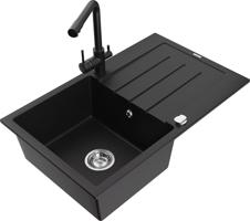 MEXEN/S Bruno granitový dřez s odkapávačem včetně baterie Duero, černá 6513-77-671600-70