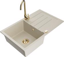 MEXEN/S Bruno granitový dřez s odkapávačem včetně baterie Telma, béžová 6513-69-670200-50