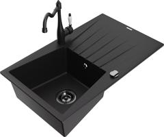 MEXEN/S Cesar granitový dřez 1-miska s odkapávačem včetně baterie Carla, černá 6514-77-670700-70-B