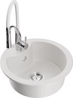 MEXEN/S Diego granitový dřez 1-miska včetně baterie Aster, bílá 6512-20-73450-02