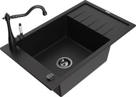 MEXEN/S Elias granitový dřez 1-miska s odkapávačem včetně baterie Carla, černá 6511-77-670700-70-B