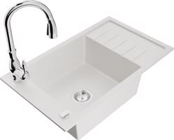 MEXEN/S Elias granitový dřez 1-miska s odkapávačem včetně baterie Savita, bílá 6511-20-672601-00
