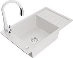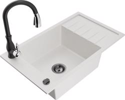 MEXEN/S Elias granitový dřez 1-miska s odkapávačem včetně baterie Savita, bílá 6511-20-672601-20
