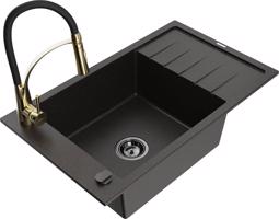 MEXEN/S Elias granitový dřez 1 s odkapávačem včetně baterie Aster, černá/zlatá metalik 6511-75-73450-57-B