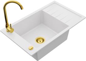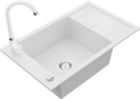 MEXEN/S Elias granitový dřez 1 s odkapávačem včetně baterie Telma, bílá 6511-20-670200-20
