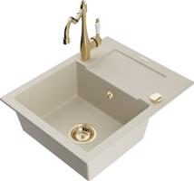 MEXEN/S Enzo granitový dřez 1 s odkapávačem včetně baterie Carla, béžová 6506-69-670700-50