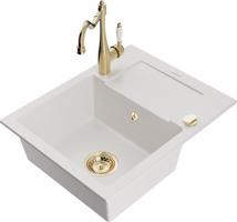 MEXEN/S Enzo granitový dřez 1 s odkapávačem včetně baterie Carla, bílá 6506-20-670700-50