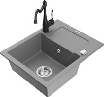 MEXEN/S Enzo granitový dřez 1 s odkapávačem včetně baterie Carla, šedá 6506-71-670700-70