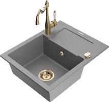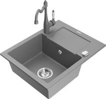 MEXEN/S Enzo granitový dřez 1 s odkapávačem včetně baterie Carla, šedá 6506-71-670700-71