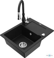MEXEN/S Enzo granitový dřez 1 s odkapávačem včetně baterie Savita, černá 6506-77-672601-70