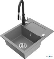 MEXEN/S Enzo granitový dřez 1 s odkapávačem včetně baterie Savita, šedá 6506-71-672601-70