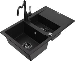 MEXEN/S Gaspar granitový dřez 1.5 s odkapávačem včetně baterie Carla, černá 6507-77-670700-70-B