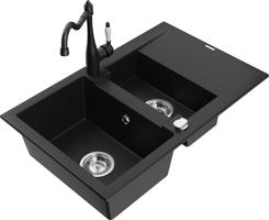 MEXEN/S Gaspar granitový dřez 1.5 s odkapávačem včetně baterie Carla, černá 6507-77-670700-70
