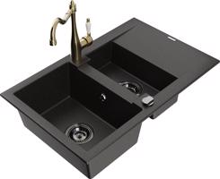 MEXEN/S Gaspar granitový dřez 1.5 s odkapávačem včetně baterie Carla černá/zlatá metalik 6507-75-670700-50-B