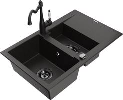 MEXEN/S Gaspar granitový dřez 1.5 s odkapávačem včetně baterie Carla černá/zlatá metalik 6507-75-670700-70-B
