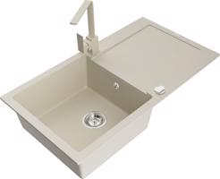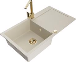 MEXEN/S Leo granitový dřez 1-miska s odkapávačem včetně baterie Rita, béžový 6501-69-670300-69