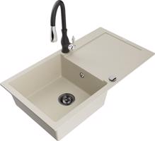 MEXEN/S Leo granitový dřez 1-miska s odkapávačem včetně baterie Savita, béžová 6501-69-672601-70