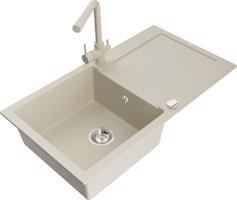 MEXEN/S Leo granitový dřez s odkapávačem včetně baterie Duero, béžová 6501-69-671600-69
