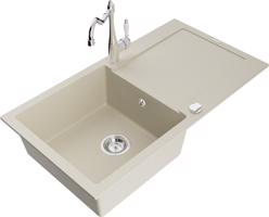 MEXEN/S Leogranitový dřez 1 s odkapávačem včetně baterie Carla, béžová 6501-69-670700-50